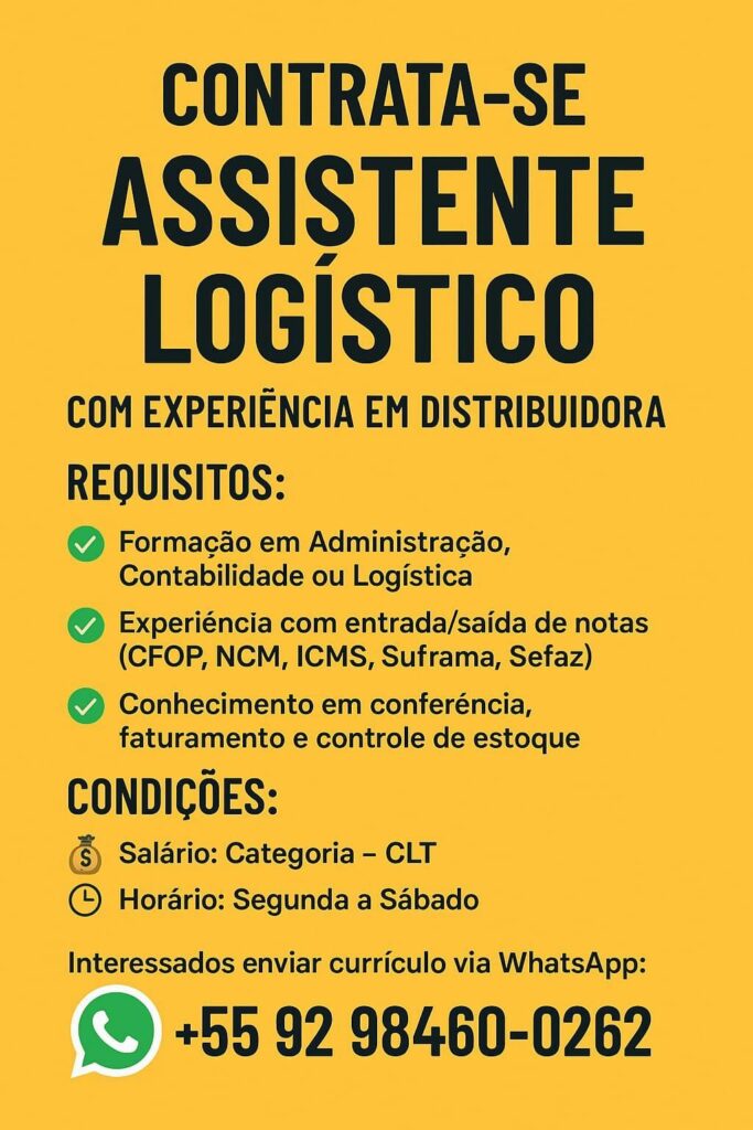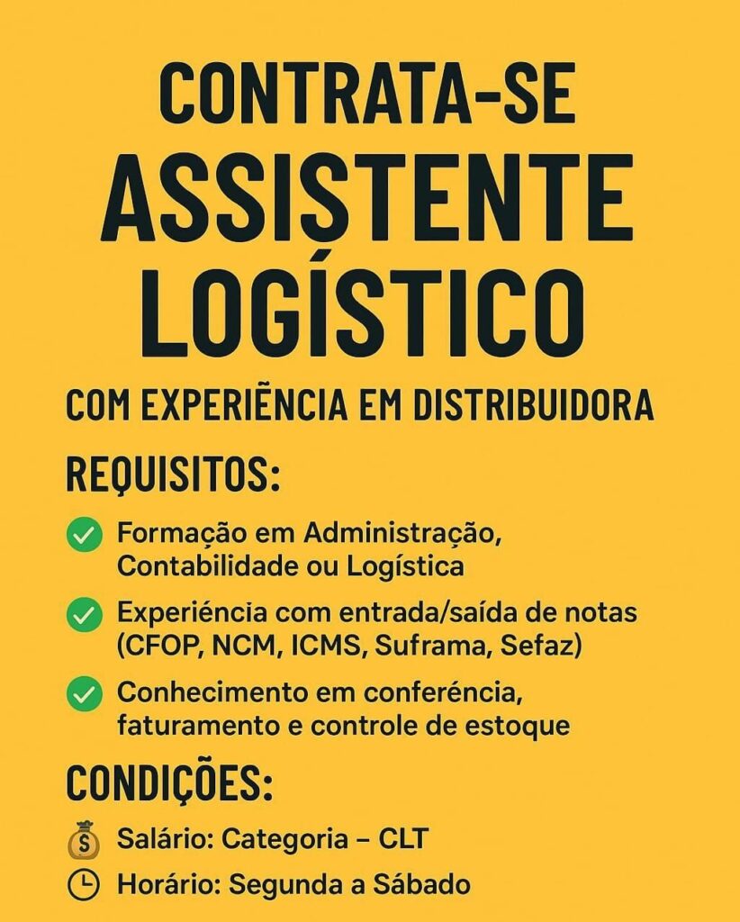 Empresa está selecionando Assistente Logístico; Envie seu currículo!