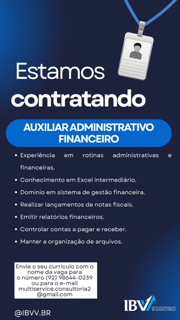 Empresa está selecionando Auxiliar administrativo financeiro; Envie seu currículo!