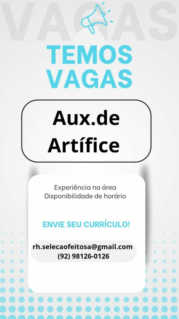 Empresa está selecionando Auxiliar de Artífice; Envie seu currículo!