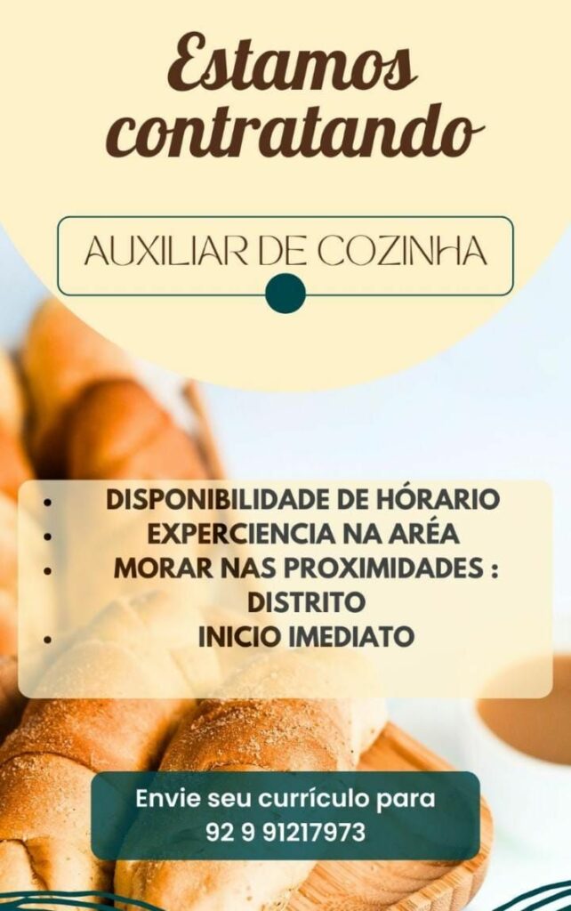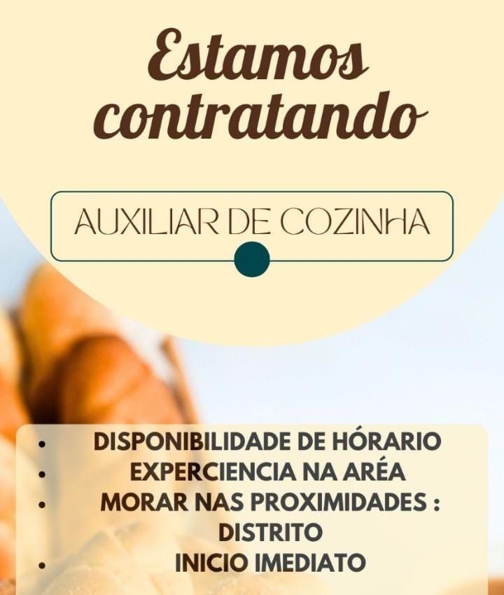 Empresa está selecionando Auxiliar de cozinha; Envie seu currículo!