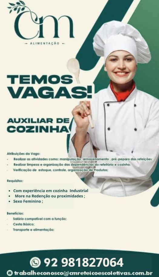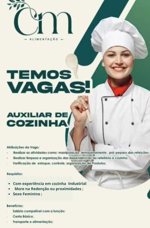 Empresa está selecionando Auxiliar de cozinha; Envie seu currículo!