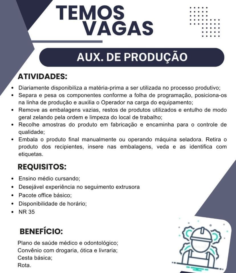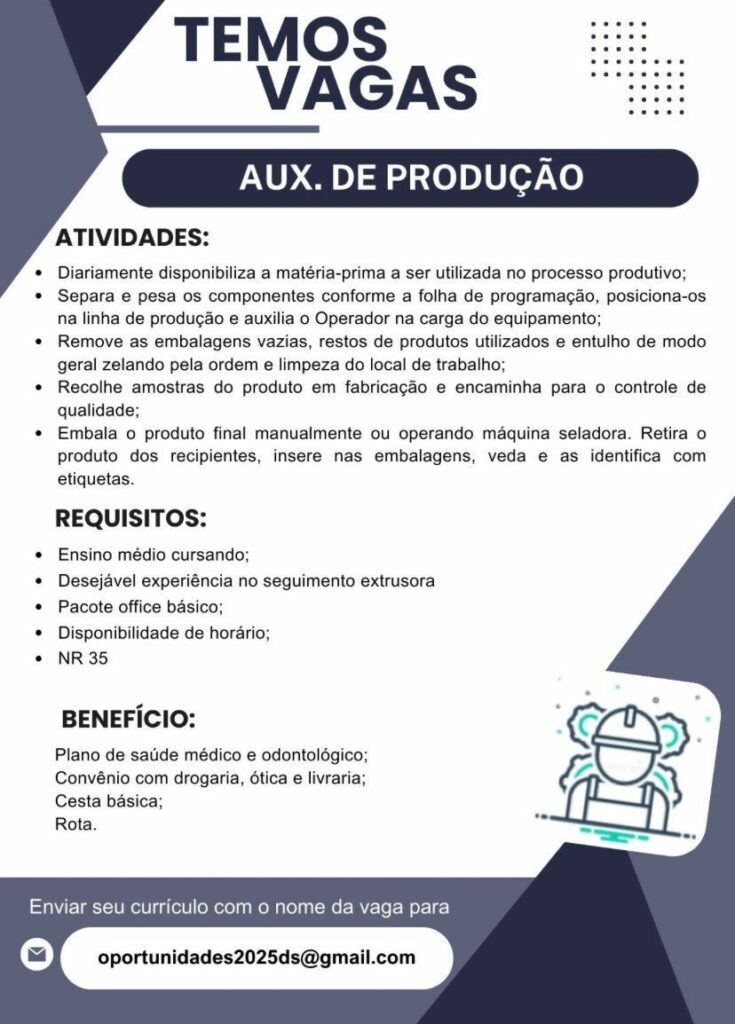 Empresa está selecionando Auxiliar de produção; Envie seu currículo!