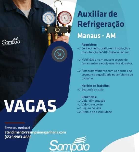 Empresa está selecionando Auxiliar de Refrigeração; Envie seu currículo!