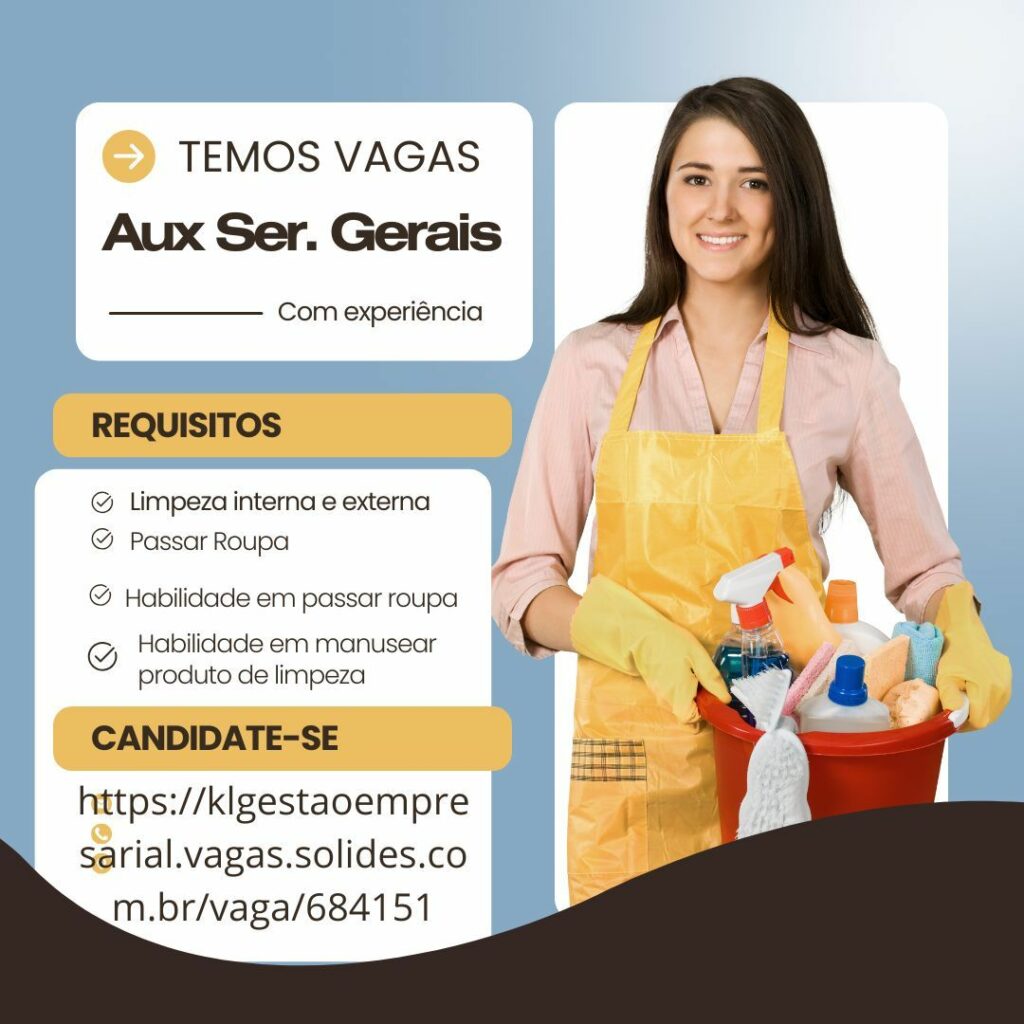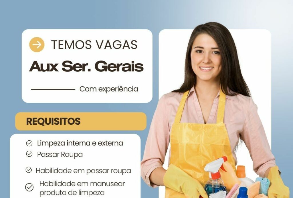 Empresa está selecionando Auxiliar de serviços gerais; Envie seu currículo!