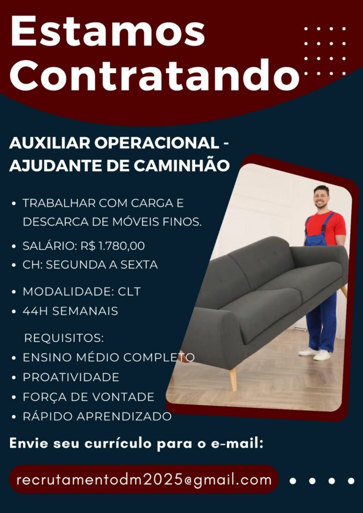 Empresa está selecionando Auxiliar operacional – Ajudante de caminhão; Envie seu currículo!