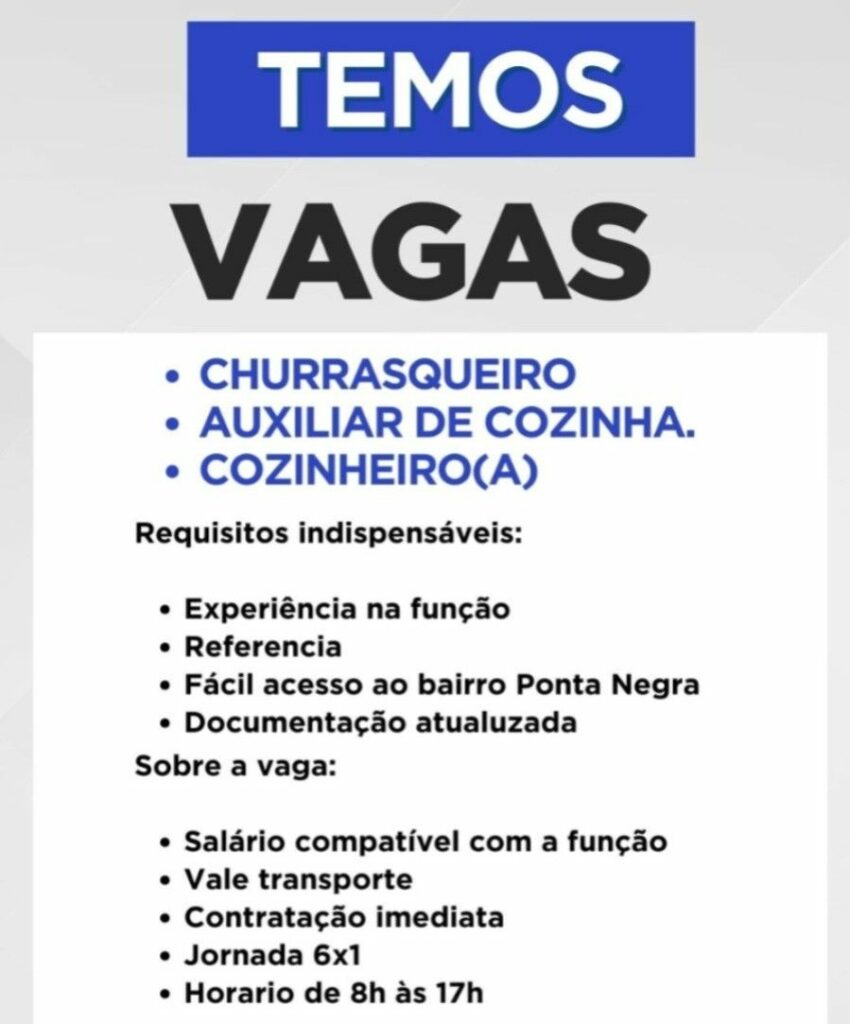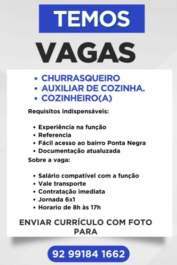 Empresa está selecionando Churrasqueiro, Auxiliar de cozinha, Cozinheiro (a); Envie seu currículo!