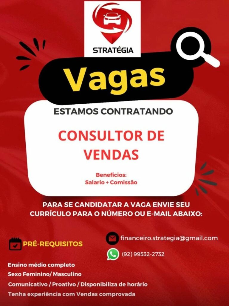 Empresa está selecionando Consultor de vendas; Envie seu currículo!
