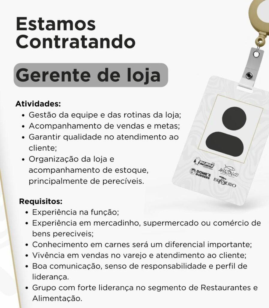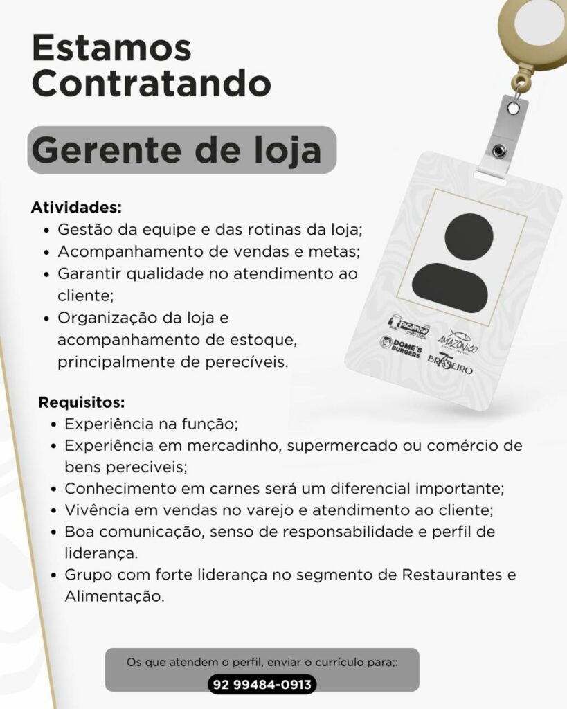 Empresa está selecionando Gerente de loja; Envie seu currículo!