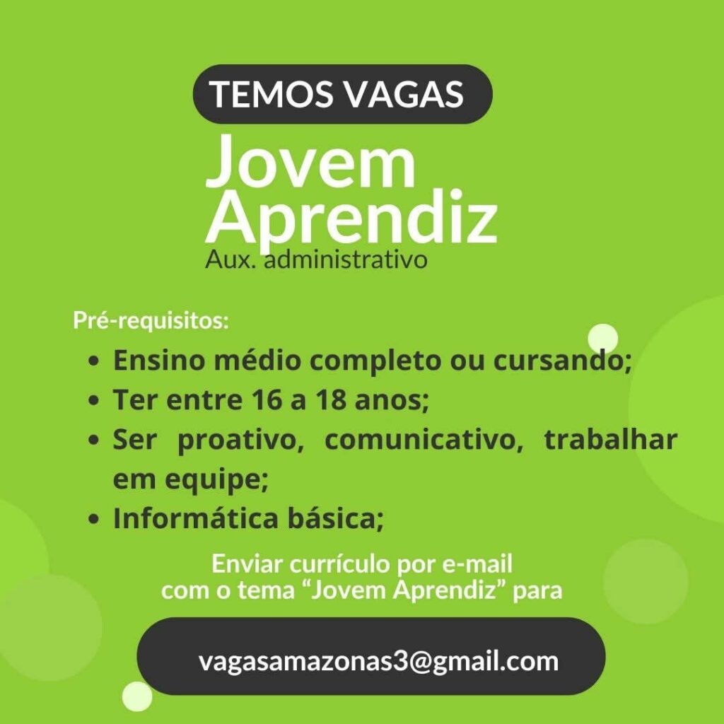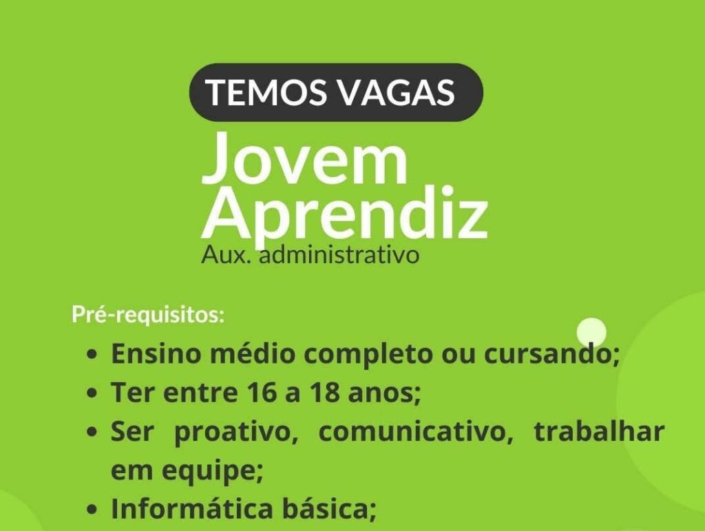 Empresa está selecionando Jovem Aprendiz; Envie seu currículo