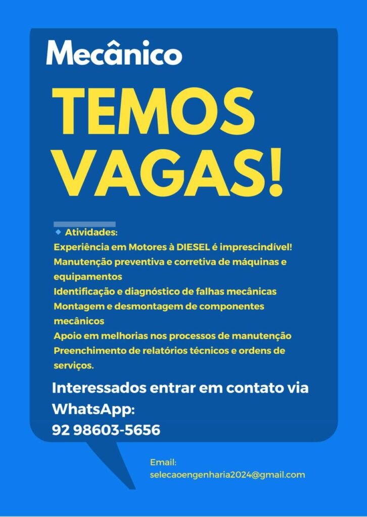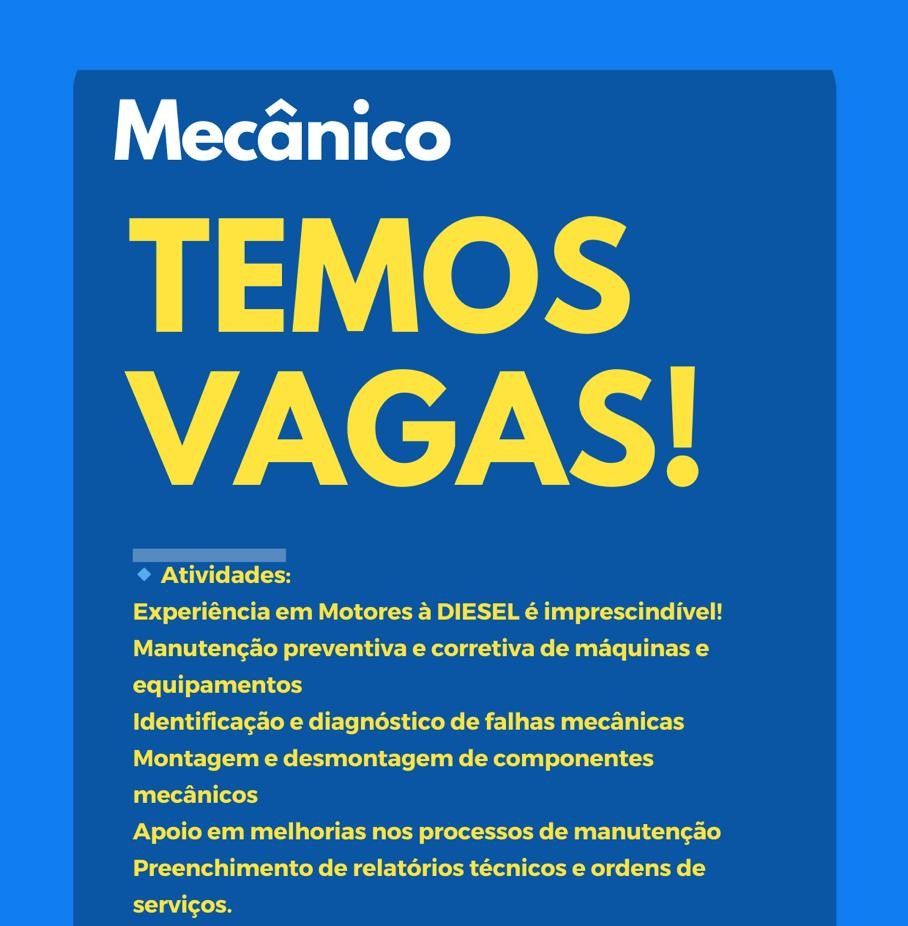 Empresa está selecionando Mecânico; Envie seu currículo!