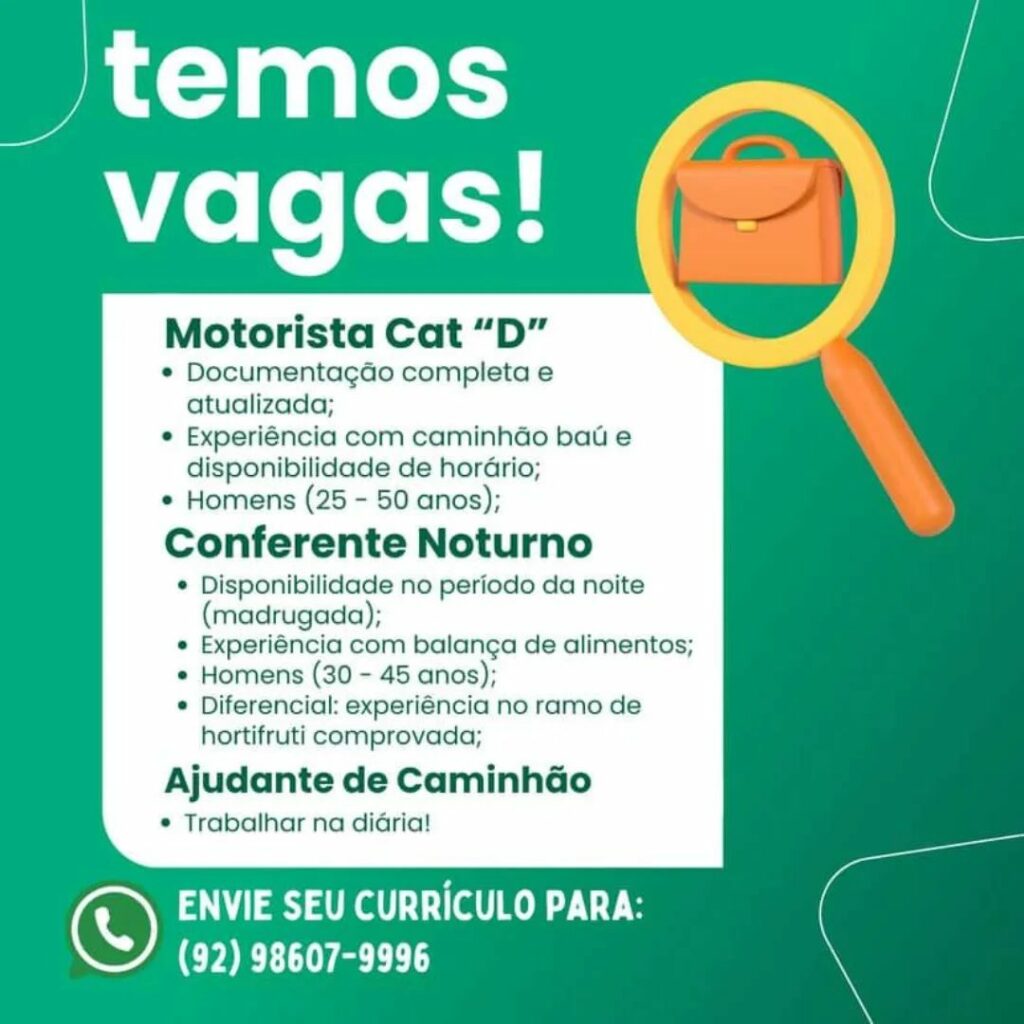 Empresa está selecionando Motorista, Conferente noturno, Ajudante de caminhão; Envie seu currículo!