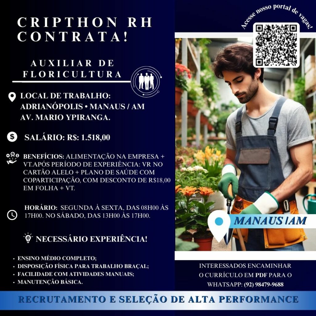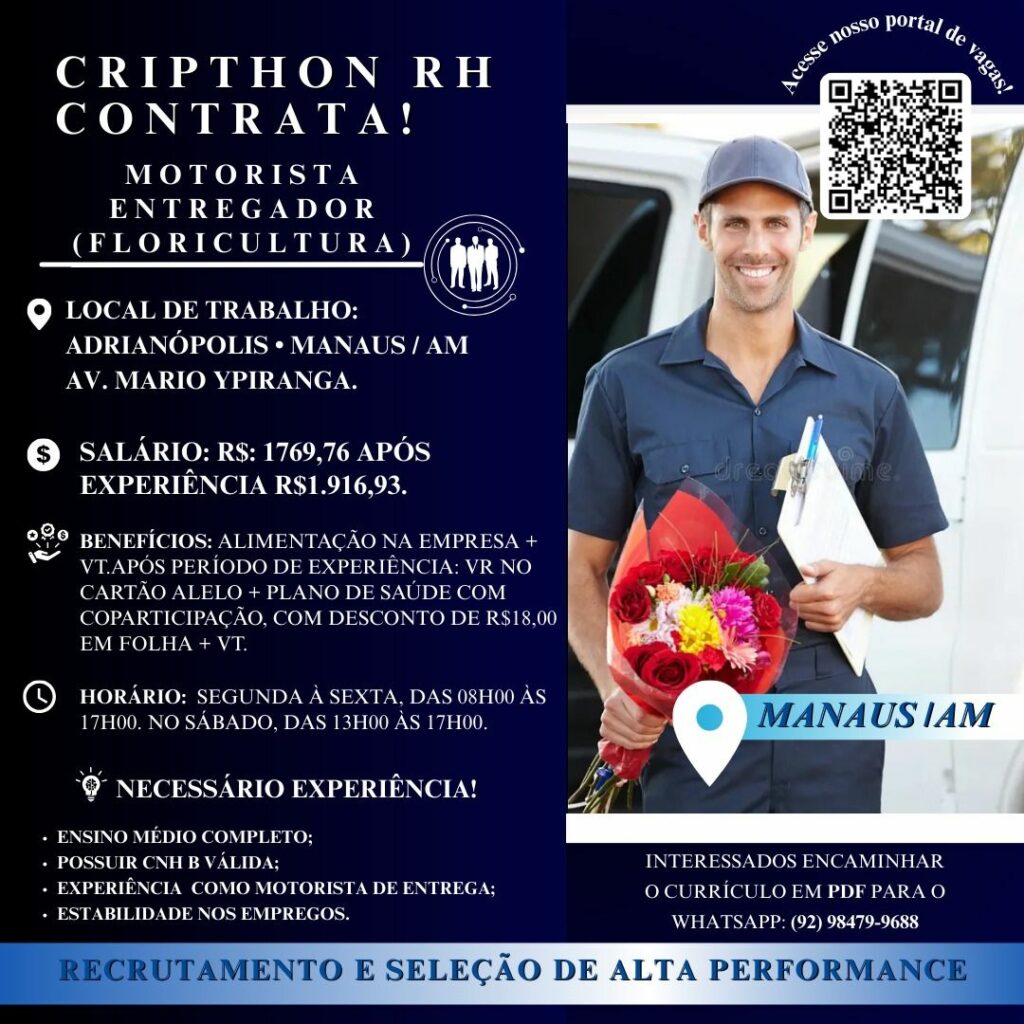 Empresa está selecionando Motorista entregador floricultura, Auxiliar de floricultura, Atendente floricultura, Motorista HR, Montador de Móveis, Auxiliar de carga e descarga; Envie seu currículo!