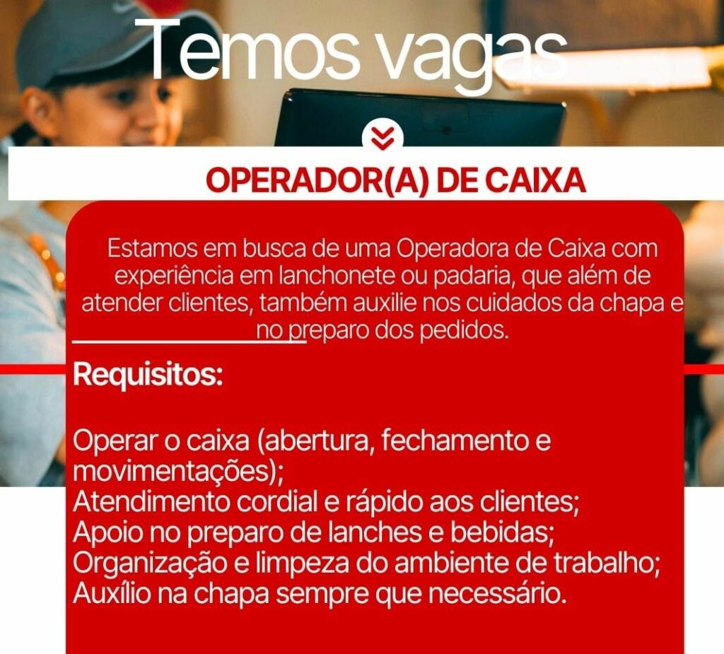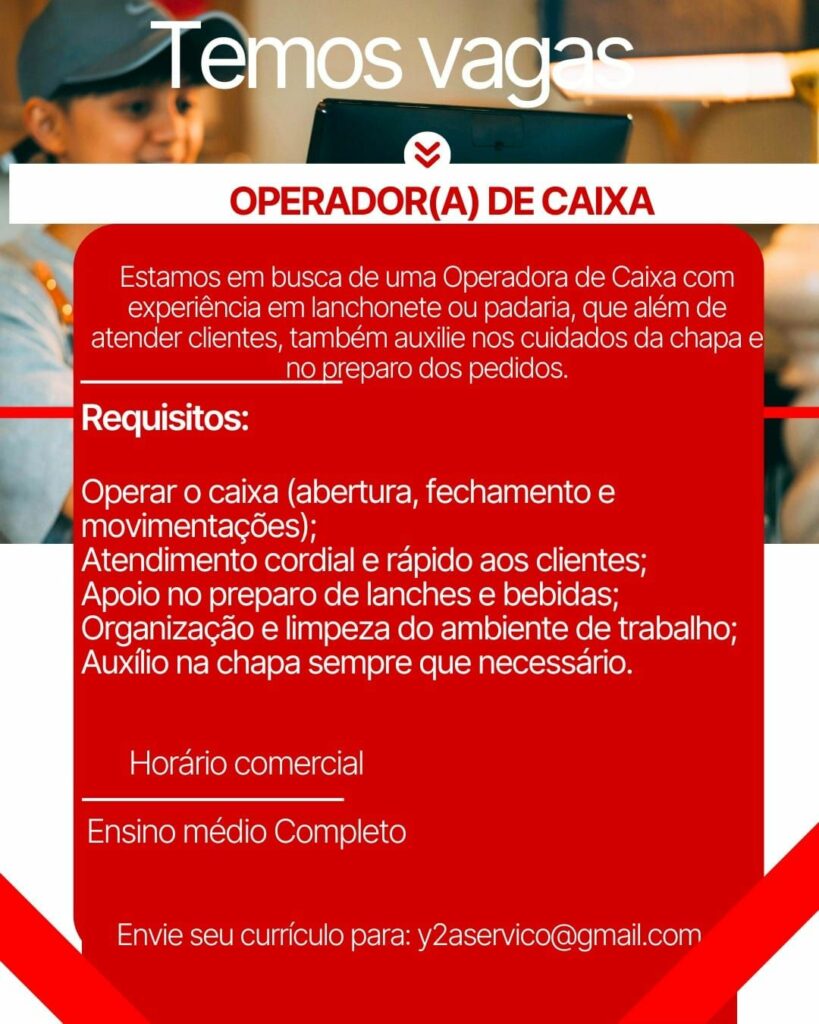 Empresa está selecionando Operador (a) de caixa; Envie seu currículo!
