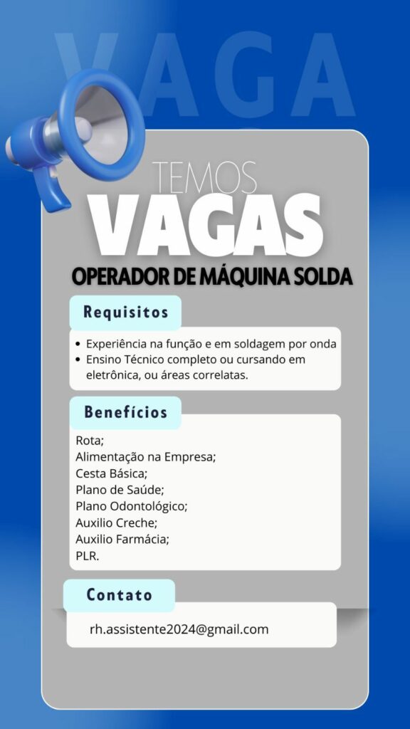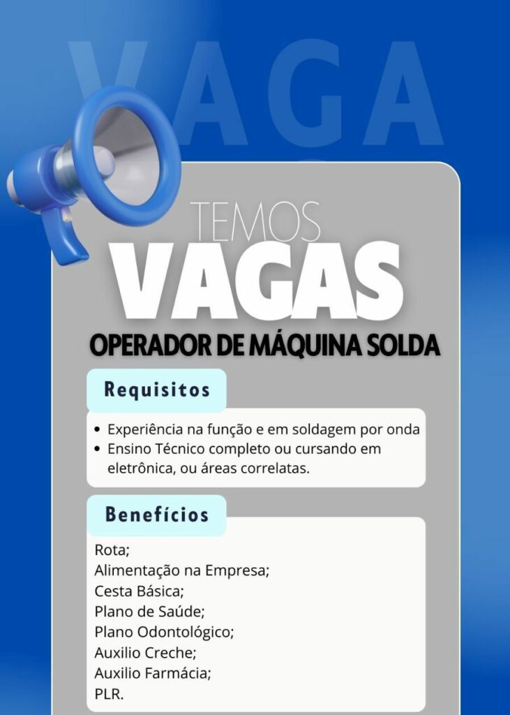 Empresa está selecionando Operador de máquina de solda; Envie seu currículo!