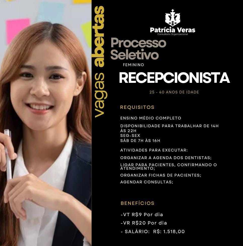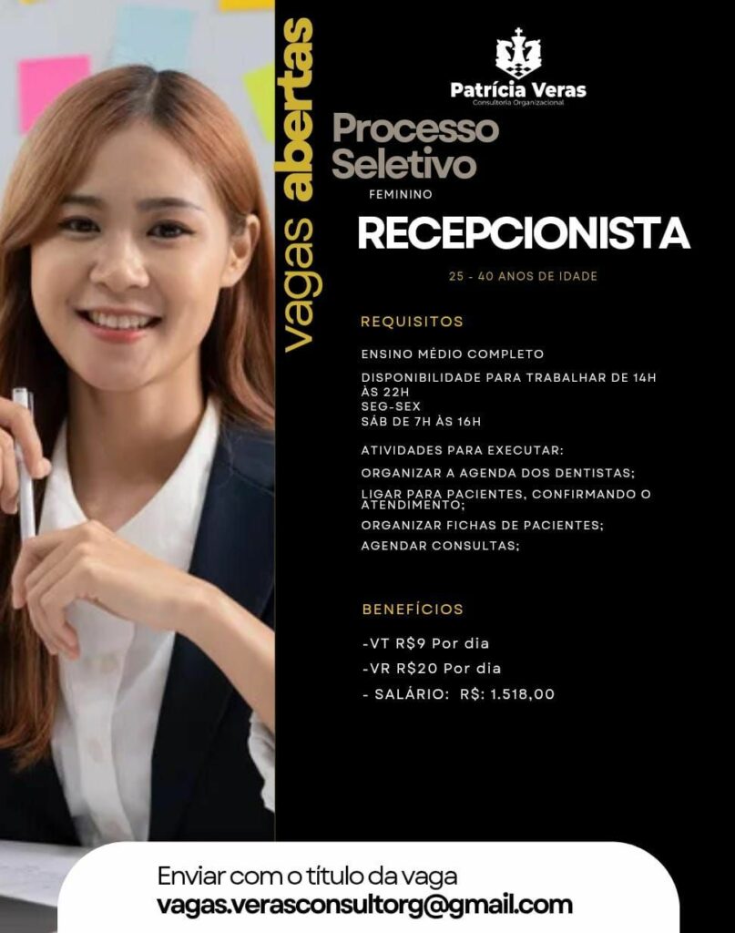 Empresa está selecionando Recepcionista; Envie seu currículo!