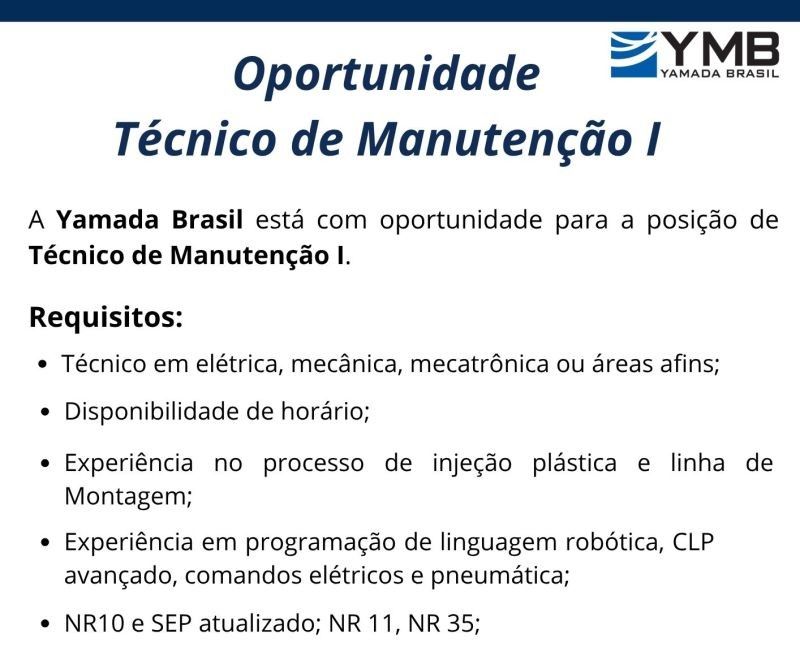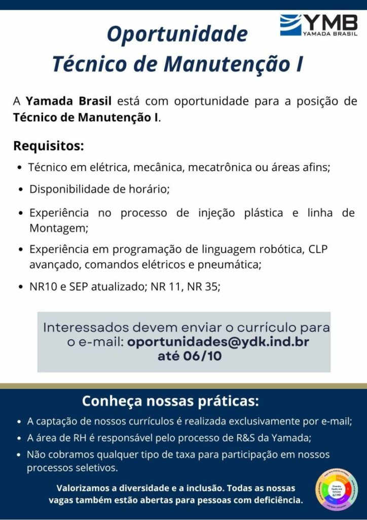 Empresa está selecionando Técnico de Manuntenção l; Envie seu currículo!