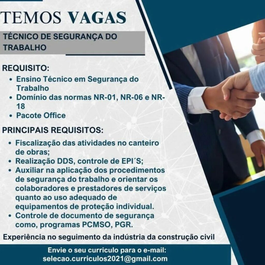 Empresa está selecionando Técnico de segurança do trabalho; Envie seu currículo!