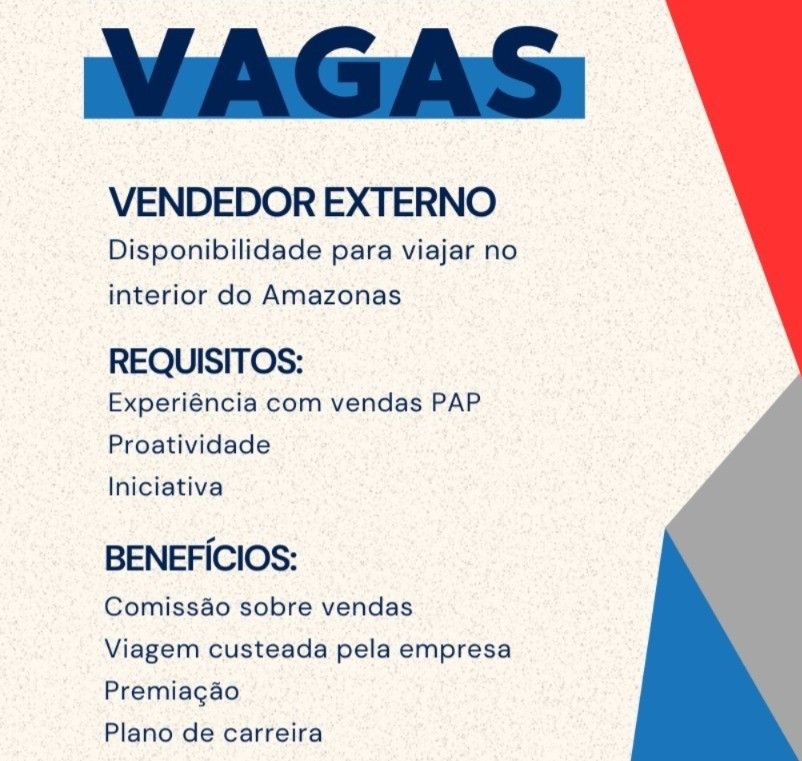Empresa está selecionando Vendedor externo; Envie seu currículo!