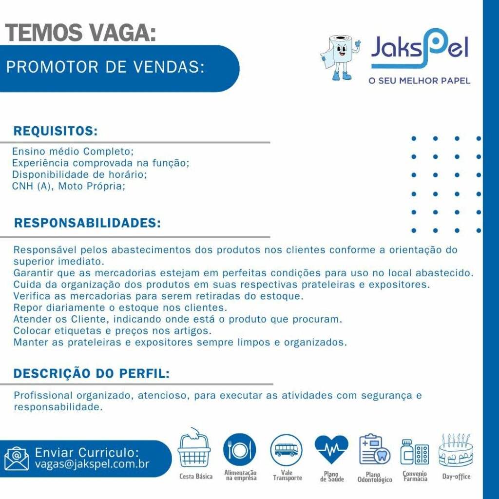 Empresa Jakspel está selecionando Promotor de vendas; Envie seu currículo!
