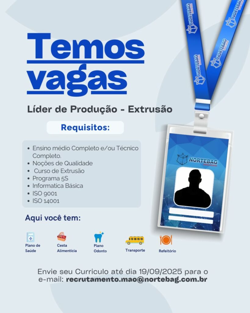 Empresa Nortebag está selecionando para seu setor de produção; Envie seu currículo!