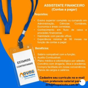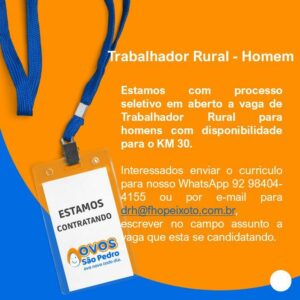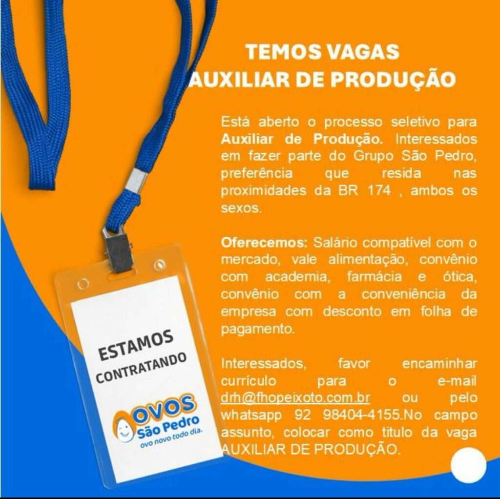 Empresa Ovos são pedro seleciona Auxiliar de produção e mais 05 cargos; Envie seu currículo!