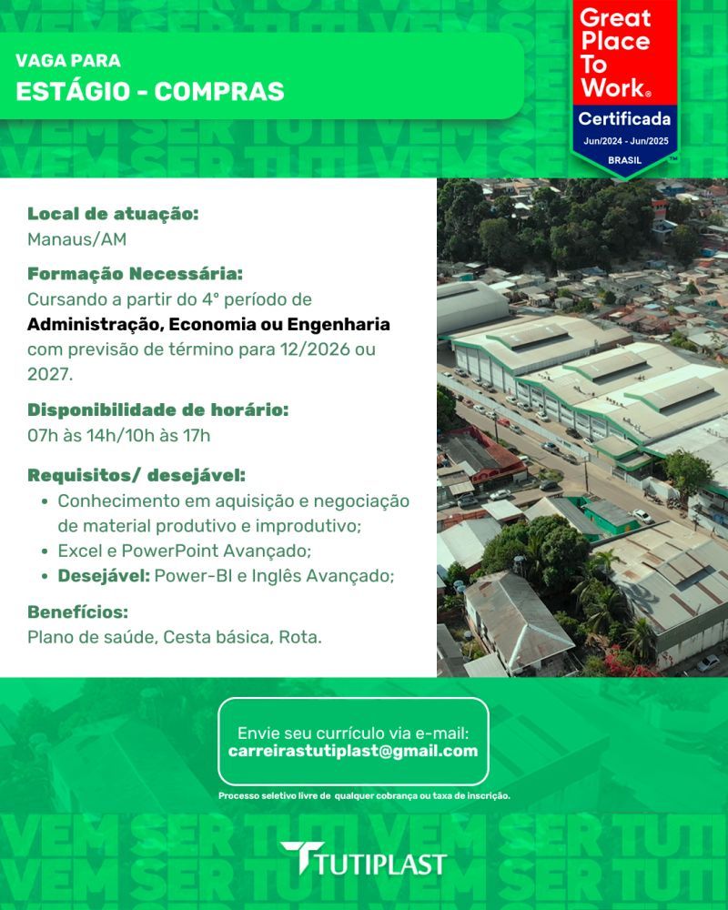 Fábrica da Tutiplast abre seleção para vagas de emprego & estágio; Saiba como se candidatar!