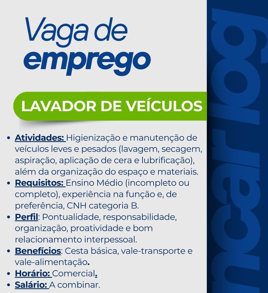 Grupo Alencar log seleciona Lavador de veículos; Envie seu currículo!