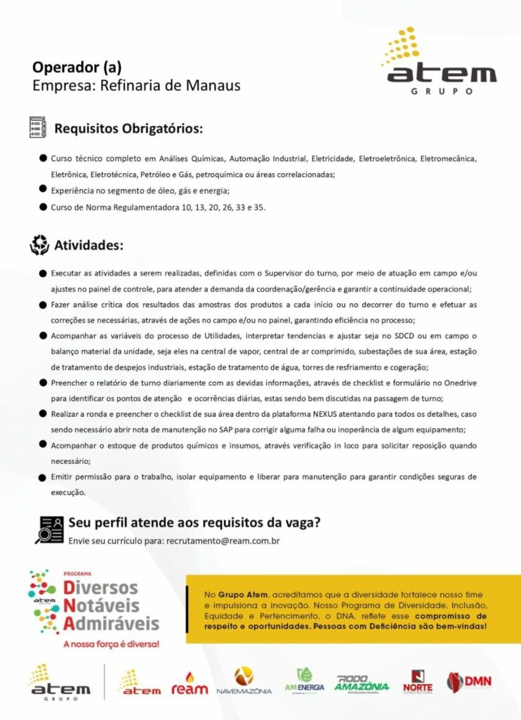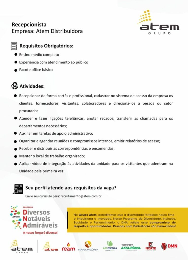 Grupo Atem está selecionando Recepcionista, Operador (a); Envie seu currículo!