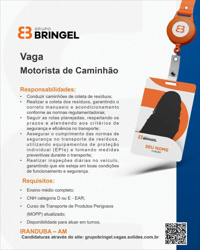 Grupo Bringel está selecionando Motorista de caminhão; Envie seu currículo!