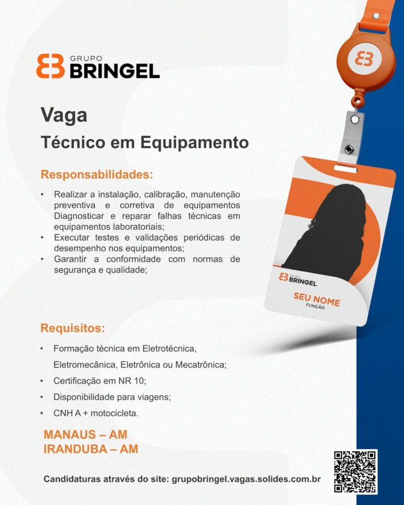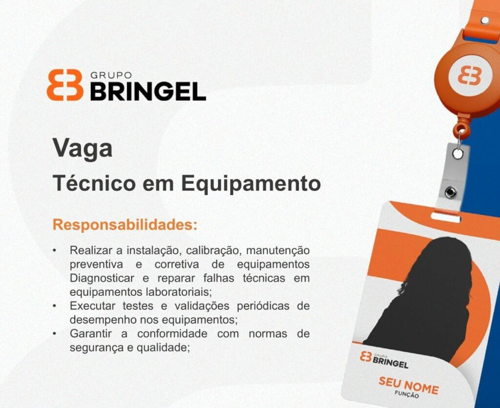Grupo Bringel está selecionando Técnico em equipamento; Envie seu currículo!