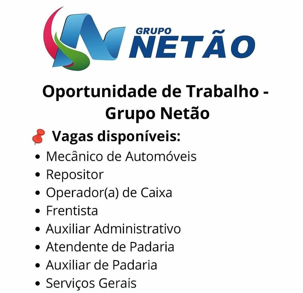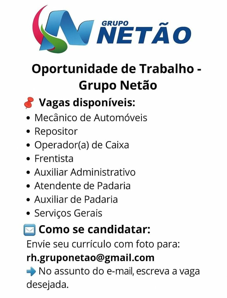 Grupo Netão está selecionando para vagas de emprego; Saiba como se candidatar!