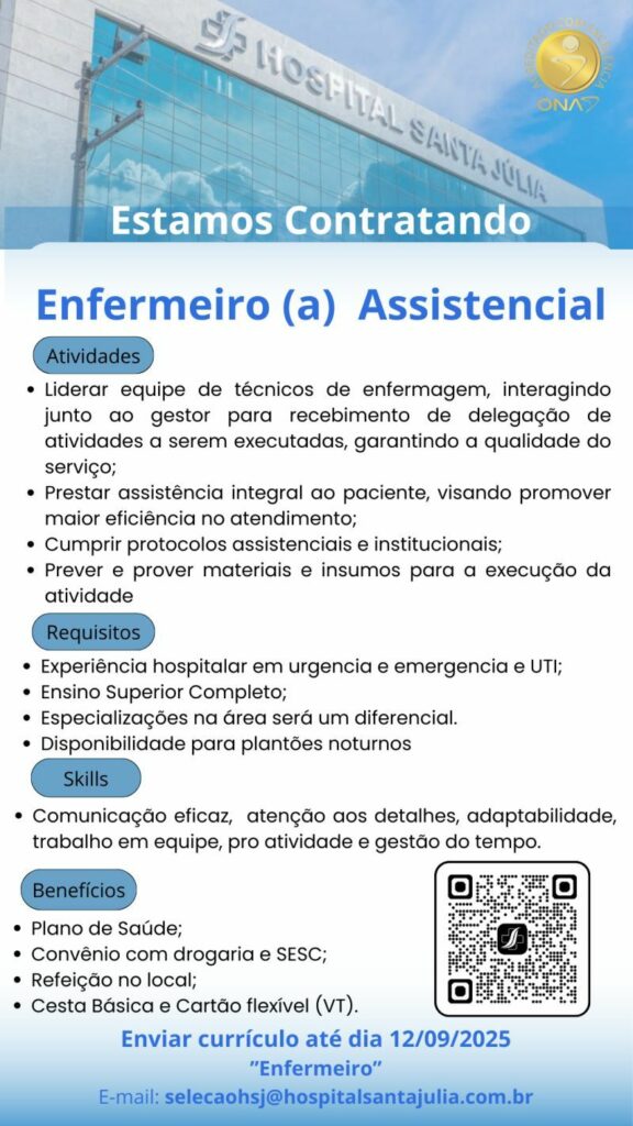 Hospital Santa Júlia está selecionando para vagas de emprego em Manaus; Envie seu currículo!