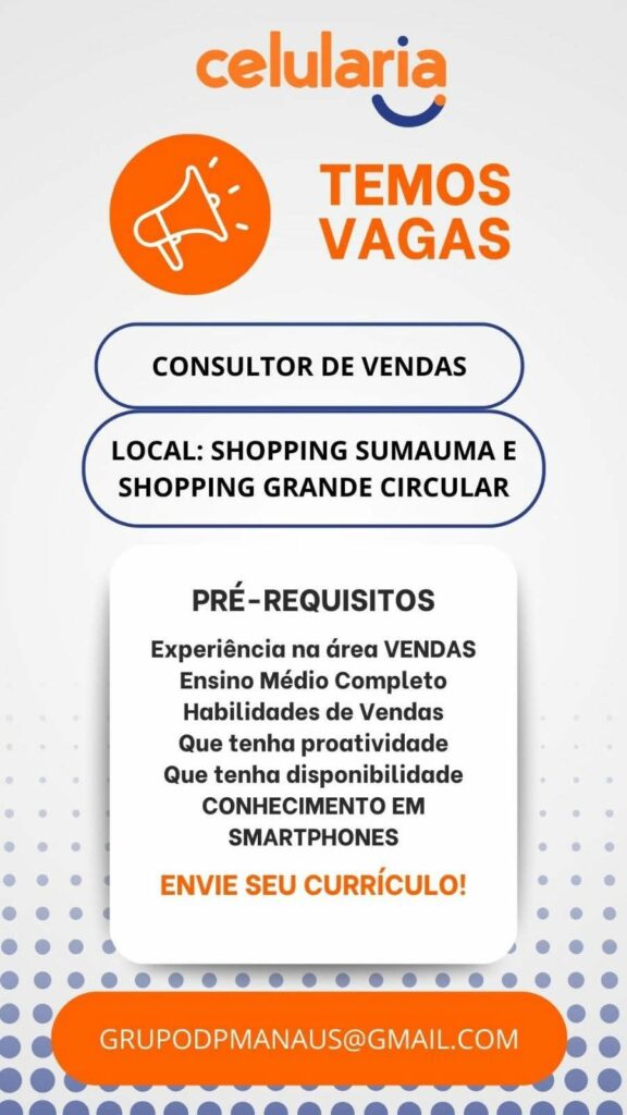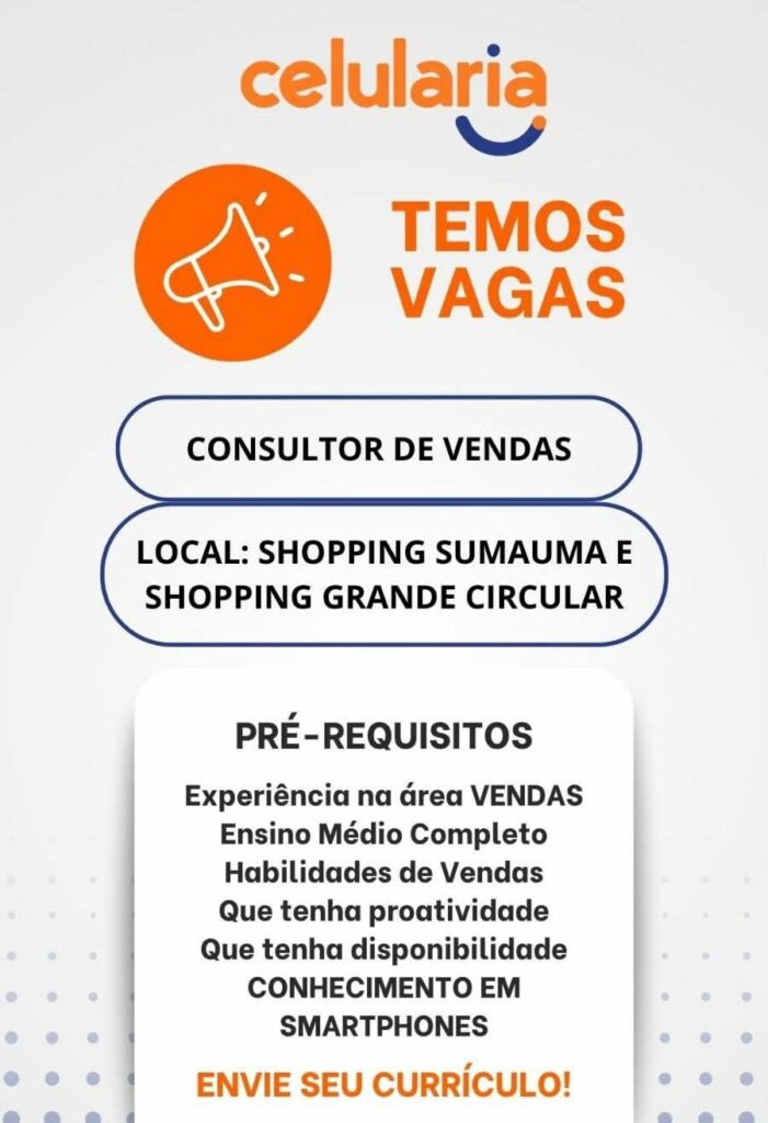 Loja do Amazonas Shopping seleciona Consultor de vendas; Envie seu currículo!
