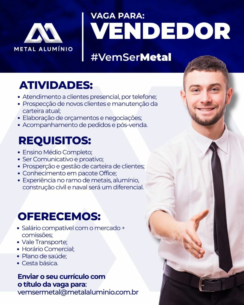 Metal Alumínio está selecionando Vendedor; Envie seu currículo!