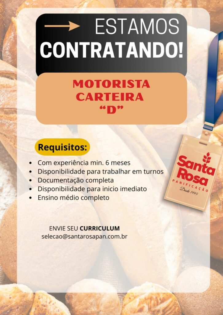 Panificação Santa Rosa está selecionando Motorista; Envie seu currículo!
