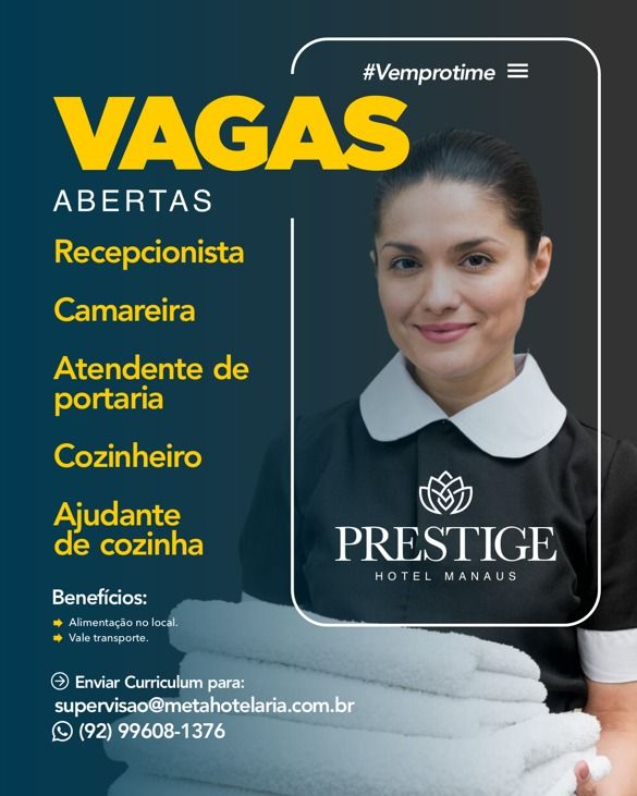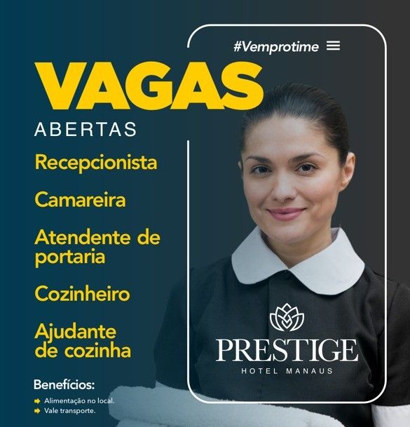 Prestigie hotel seleciona Recepcionista, Camareira, Atendente de portaria, Cozinheiro, Ajudante de cozinha; Envie seu currículo!
