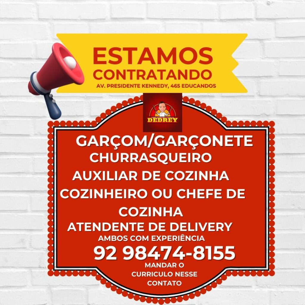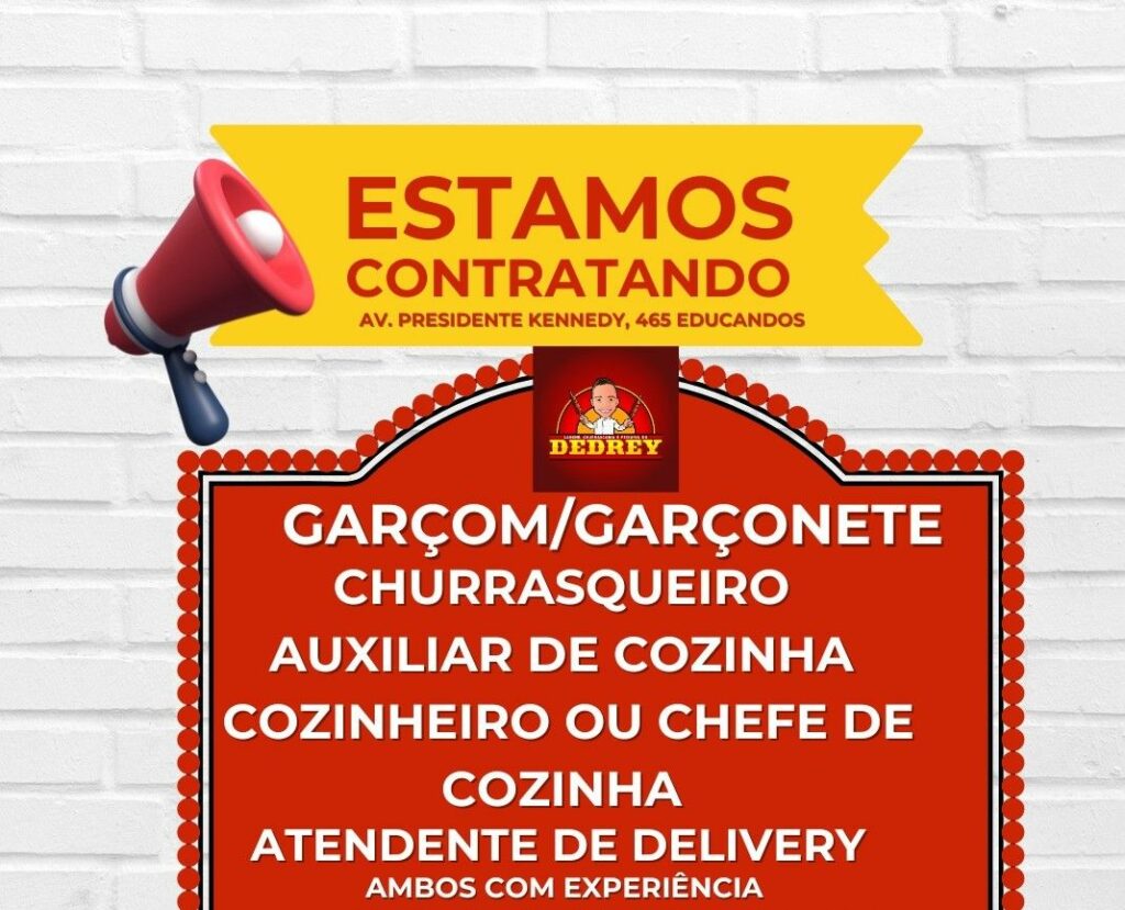 Restaurante está selecionando Garçom / Garçonete, Churrasqueiro, Auxiliar de cozinha, Cozinheiro ou chefe de cozinha, Atendente de delivery; Envie seu currículo!