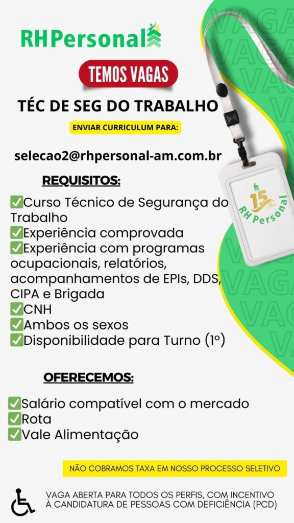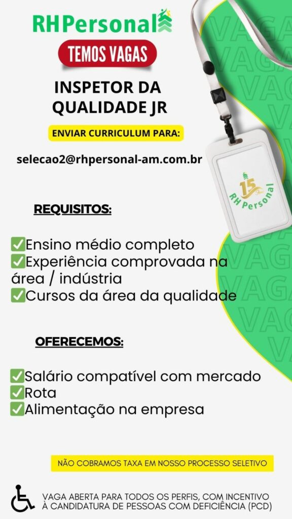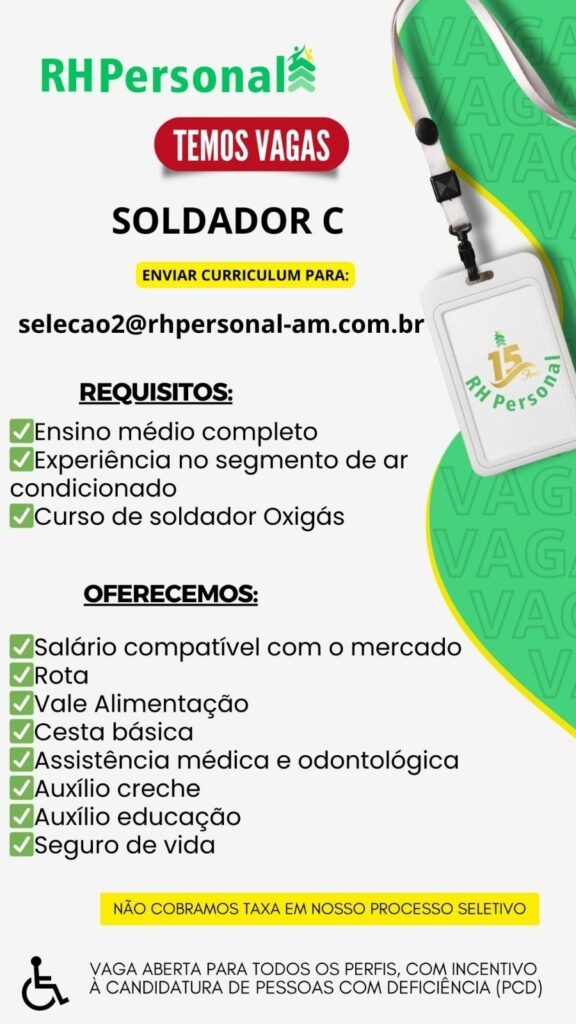 Rh está selecionando Inspetor da qualidade jr, Técnico de segurança do trabalho, Soldador c, Ajudante geral; Envie seu currículo!