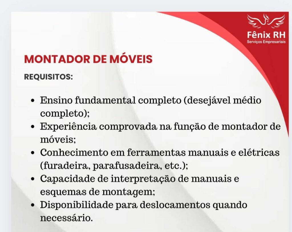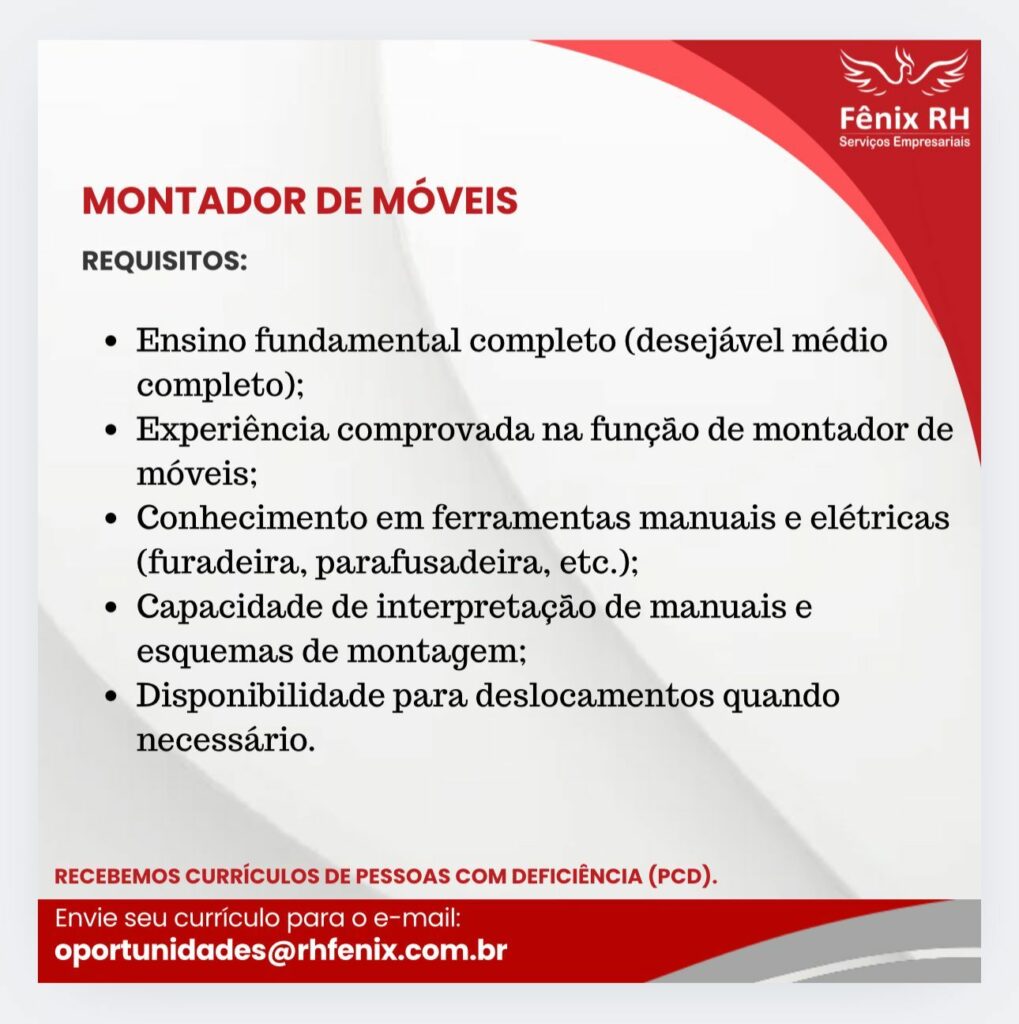 Rh está selecionando Montador de Móveis; Envie seu currículo!