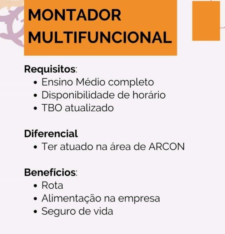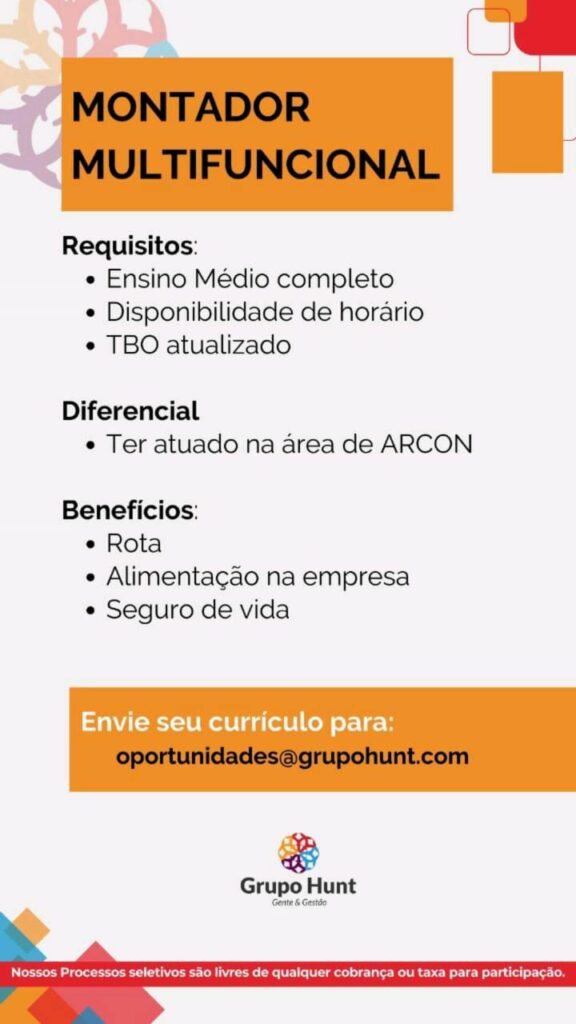 Rh está selecionando Montador Multifuncional; Envie seu currículo!