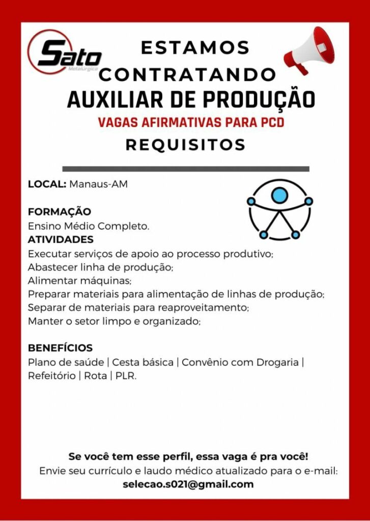 Sato Metalúrgica está selecionando Auxiliar de produção; Envie seu currículo!