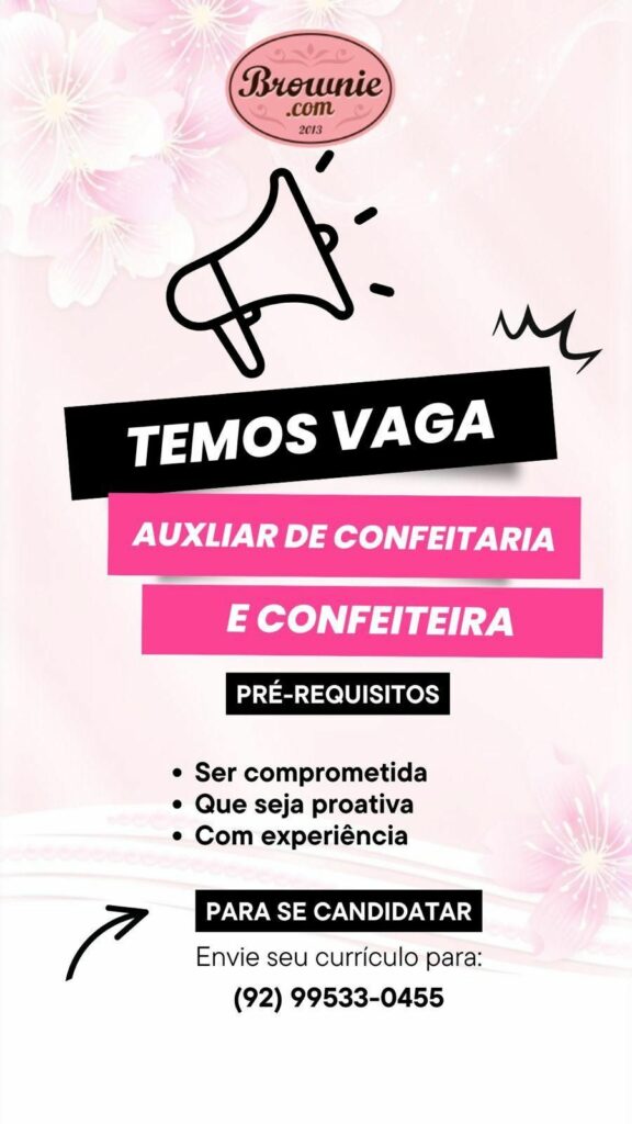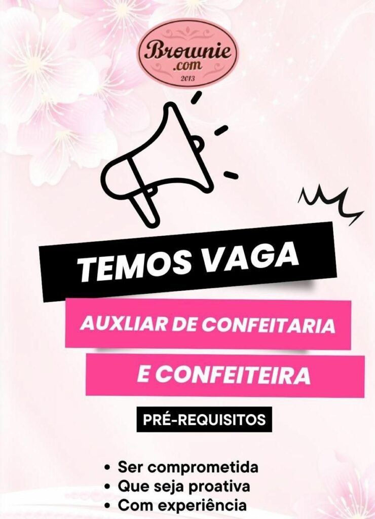 Seleção para seguintes vagas Auxiliar de confeitaria, Confeitaria; Envie seu currículo!