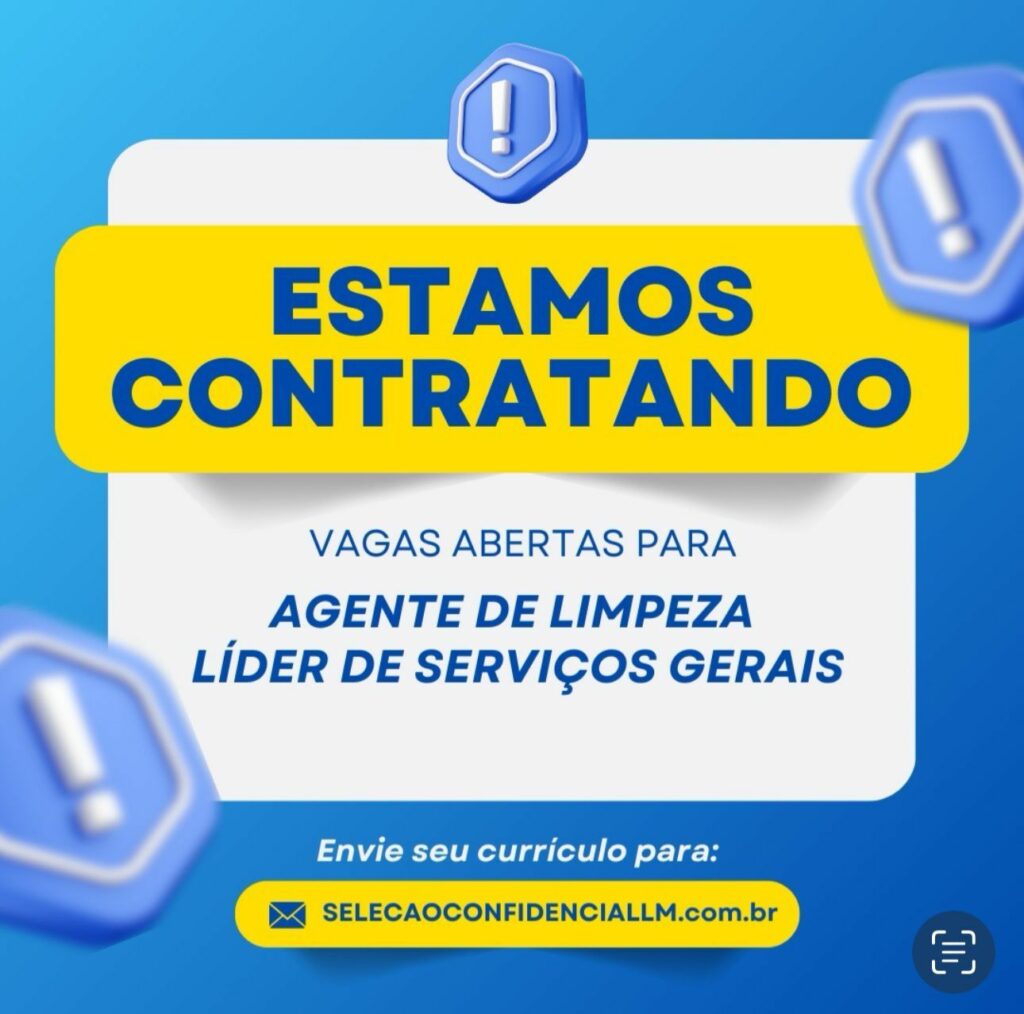 Seleção para vaga de Agente de limpeza, Líder de serviços gerais; Envie seu currículo!