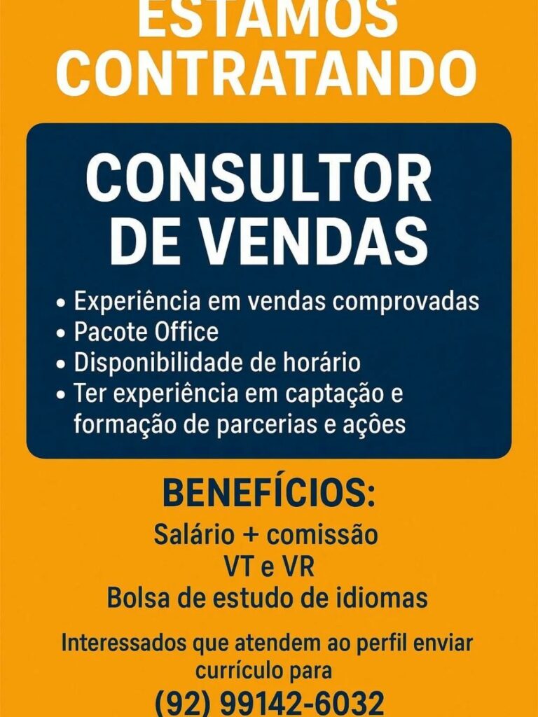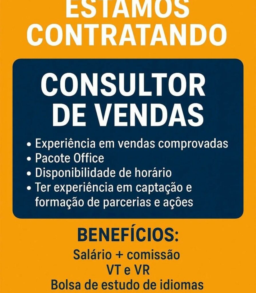 Seleção para vaga de Consultor de vendas; Envie seu currículo!