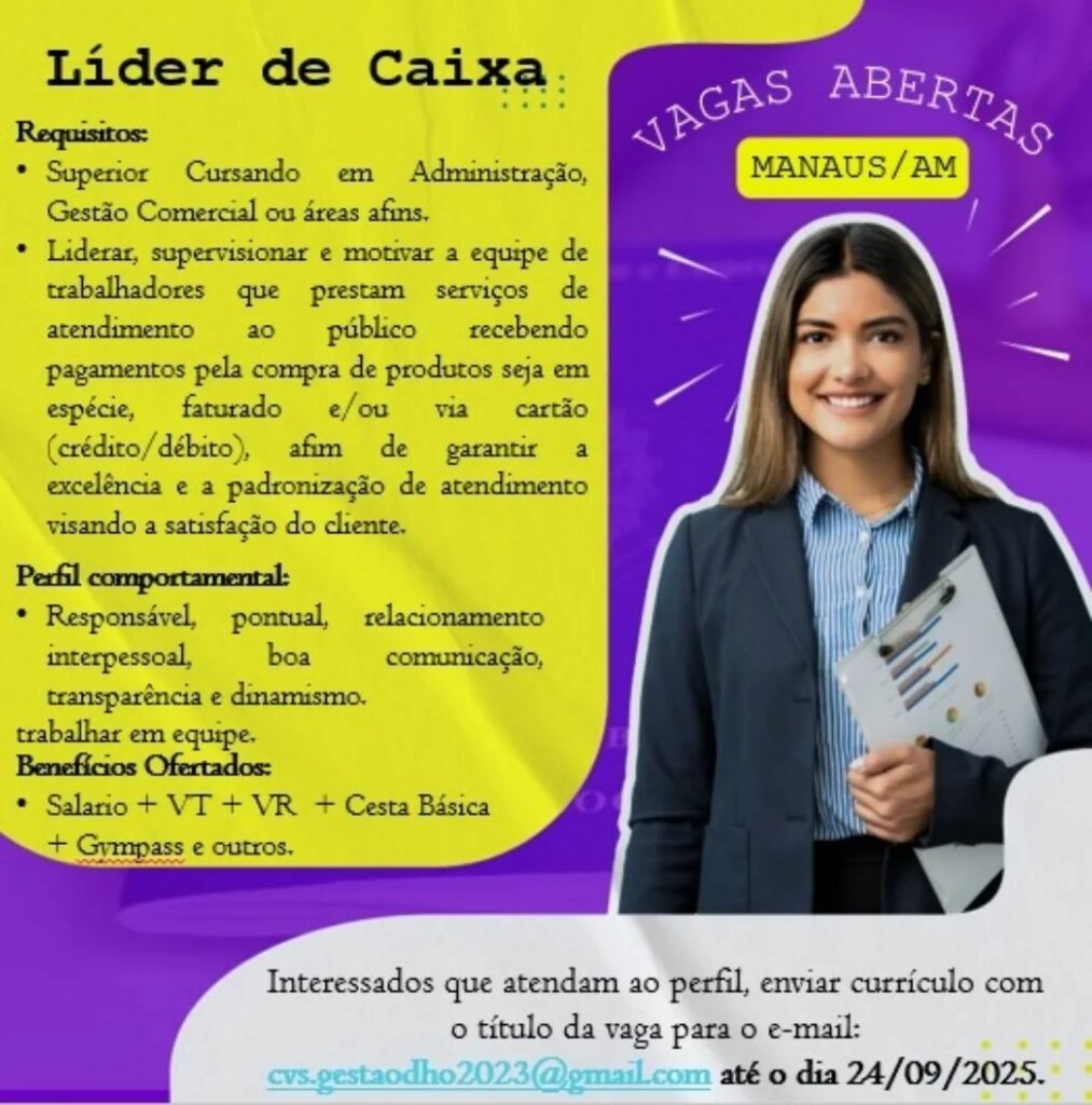 Seleção para vaga de Líder de caixa, Auxiliar fiscal, Coordenador produtos; Envie seu currículo!