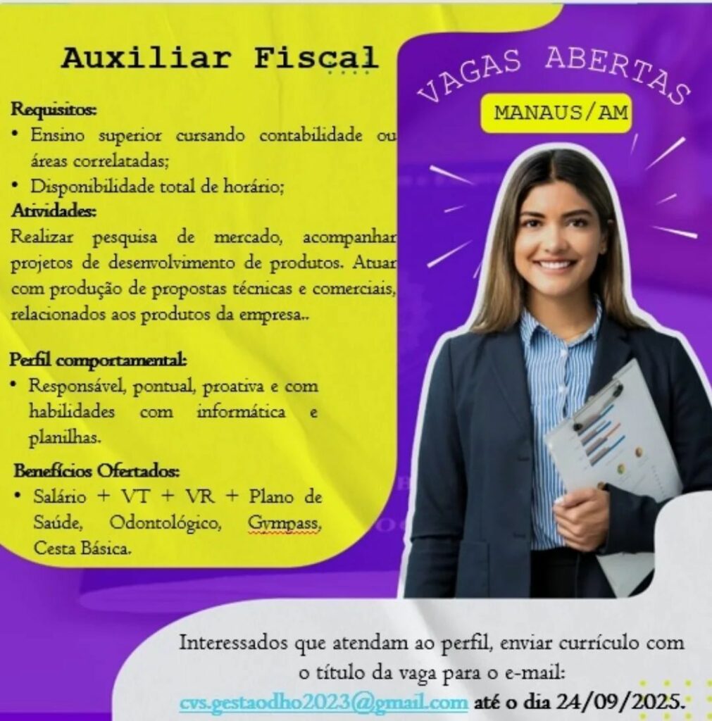 Empresa seleciona para vaga de Analista fiscal jr; Envie seu currículo!