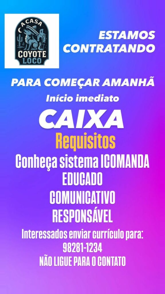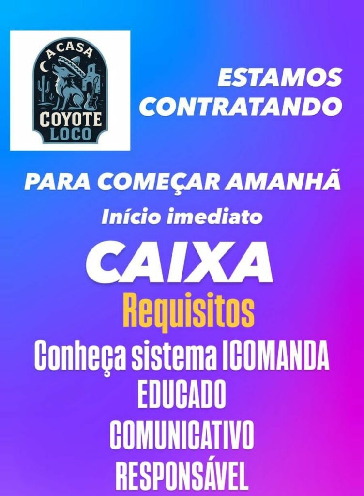 Seleção para vaga de Operador (a) de caixa; Envie seu currículo!