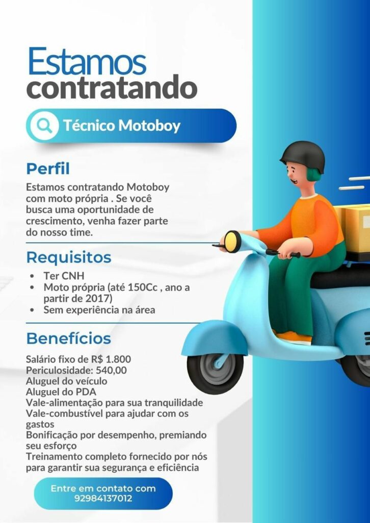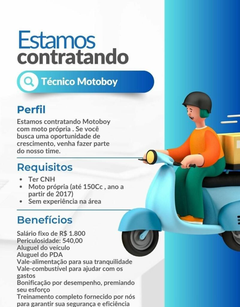 Seleção para vaga de Técnico Motoboy; Envie seu currículo!