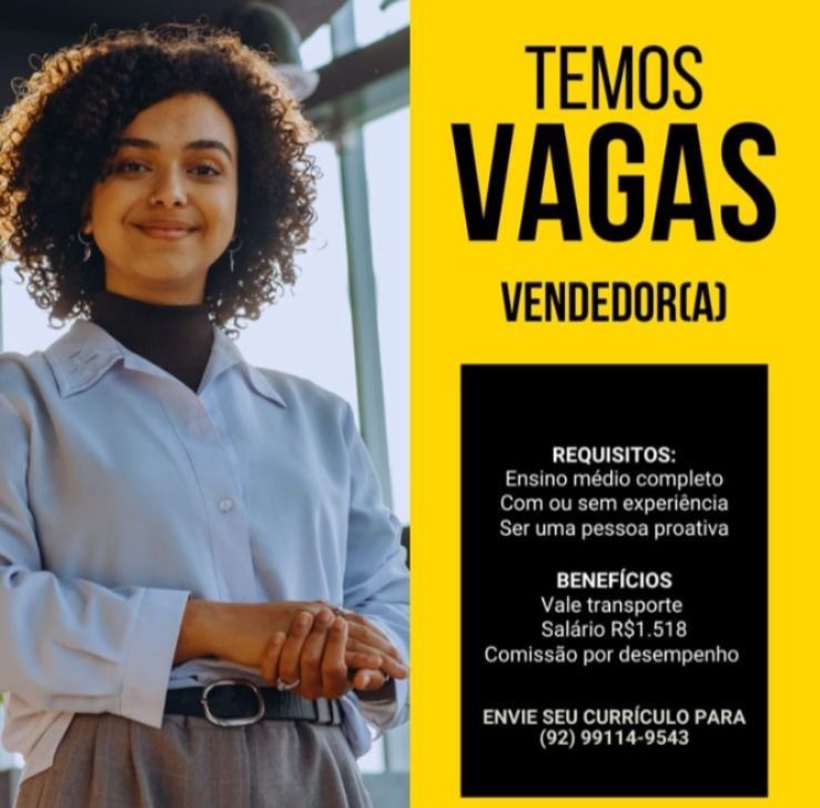 Seleção para vaga de Vendedor (a); Envie seu currículo!