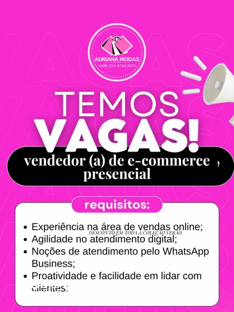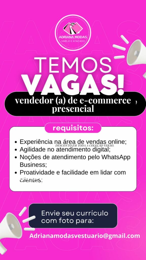 Seleção para vaga de Vendedor (a); Envie seu currículo!